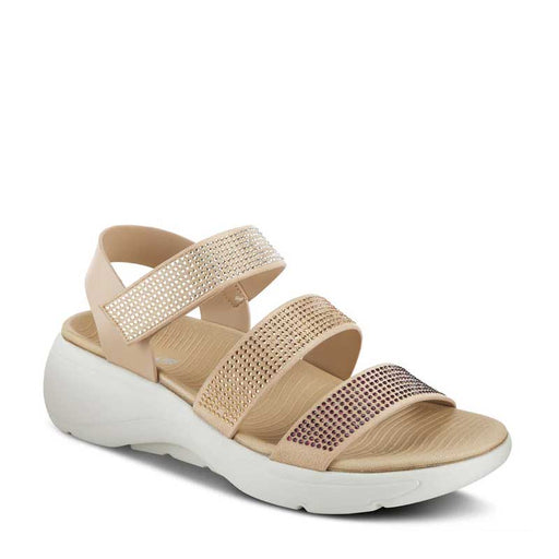 SPRING FOOTWEARSporty slip-on sandal with an adjustable ankle strap and two upper straps bedazzled by rhinestones on an anatomic insole and chunky round outsole t...
