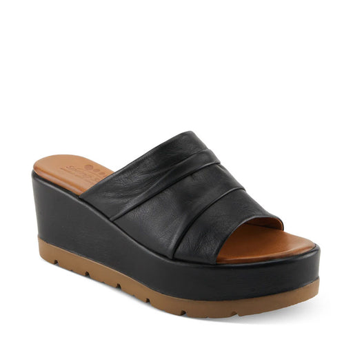 SPRING FOOTWEARElevate your style and comfort with our leather wedge platform slip-on sandal, featuring gathered leather detailing, an elastic gore for flexibilit...