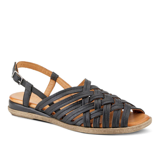 SPRING FOOTWEARTubular criss cross all leather sandal with a back strap. Comfortable and supportive construction on a flexible outsole. Pair with any dress or tun...
