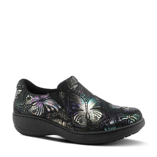 SPRING FOOTWEARLovely, vibrant, and whimsical printed synthetic slip-on shoe with exposed side elastic and tonal stitch details. Heel Height (approximately): 1 1...