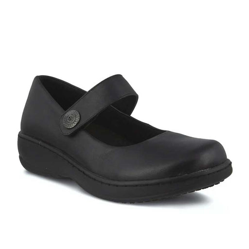 SPRING FOOTWEARLeather mary-jane fashioned with ornate metal button. Heel Height (approximately): 1 1/2" Features: Round toe, smooth leather. Hook-and-loop clo...