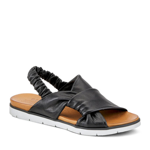 SPRING FOOTWEARTubular criss cross all leather sandal with a back strap. Comfortable and supportive construction on a flexible outsole. Pair with any dress or tun...