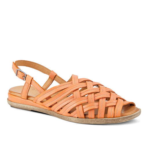 SPRING FOOTWEARTubular criss cross all leather sandal with a back strap. Comfortable and supportive construction on a flexible outsole. Pair with any dress or tun...