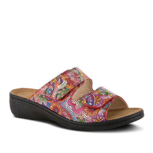 SPRING FOOTWEARComfort and fun with every step. The delightful European inspired design on this leather sandal is printed with a beautiful swash of colors for an...