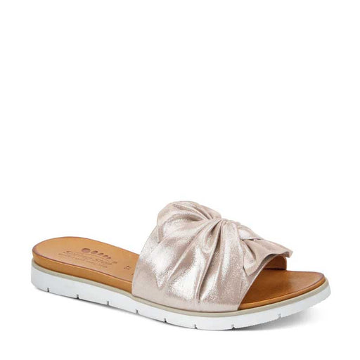 SPRING FOOTWEARSlip on style with this beautiful slide sandal with a leather bow twist detail. In a rainbow of colors and a flexible outsole for comfort, this is ...