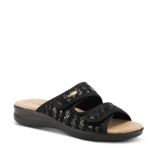 SPRING FOOTWEARA feather light, sporty slide sandal featuring a soft Lycra stretch, asymmetrical upper that conforms to your foot for ultra-comfort. Arch supports...