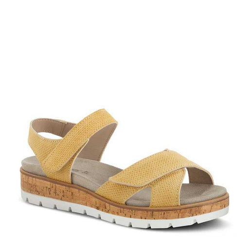 SPRING FOOTWEARAnkle strap sandal with soft suede hook and loop straps on a cork insole and rubber mixed with cork outsole for everyday activities or events. Upp...