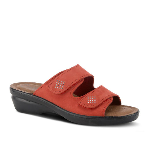 SPRING FOOTWEARItalian made with comfort and style. This leather nubuck slide sandal features double Hook and Loop Velcro straps adorned with a sweet and subtle...