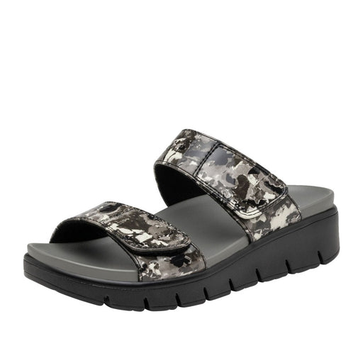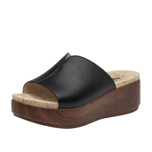 ALEGRIAIt's easy to stand tall in this leather slide that discreetly closes with double hook-and-loop close straps for a comfortable fit. There's a contou...