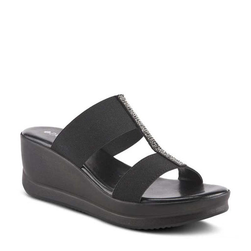 SPRING FOOTWEARComfy and elegant slide sandal wedge adorned by rhinestones straight across two elastic straps on a soft insole for comfort and support. Upper: El...