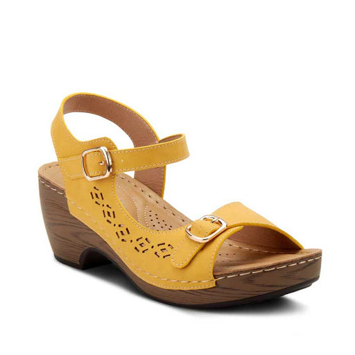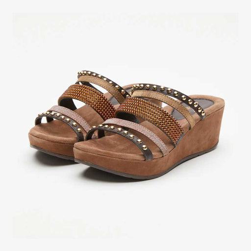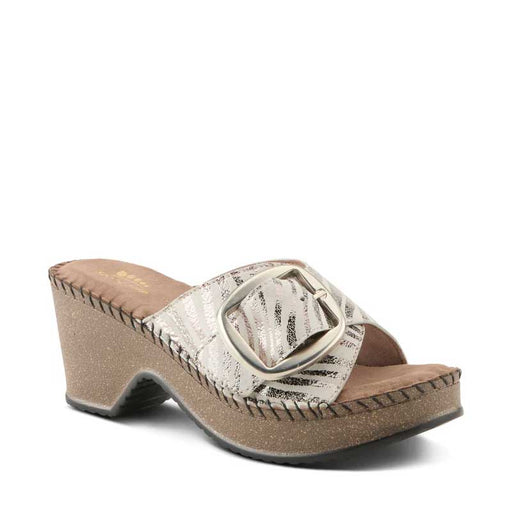 SPRING FOOTWEARChic platform wedged slip on sandal with double rounded buckles and straps on a padded insole to secure your foot and ensure long lasting comfort a...
