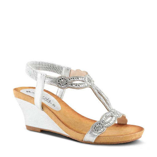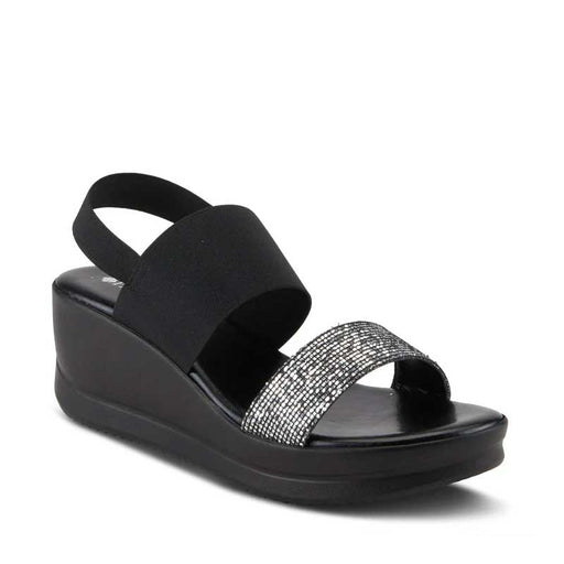 SPRING FOOTWEARComfy cute sandal wedge with an elastic back strap for extra support and adjustability; a sparkly front strap for extra glitz on a supportive, squi...