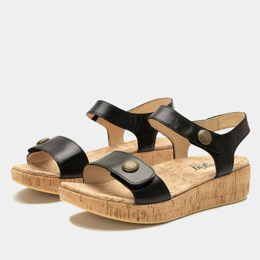 ALEGRIAPop the cork with this leather instep-strap sandal that sits on a cork-wrapped wedge rocker outsole and is lined with a molded footbed made with a ...