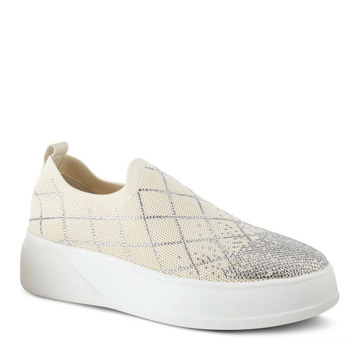 SPRING FOOTWEARTrendy chic slip-on sneaker dripping in gemstones that make up a waffle pattern with a cushioned outsole on a chunky flatform. Upper: Synthetic Li...