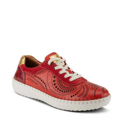 SPRING FOOTWEARCalling all fashionistas on the go. Round out your footwear collection with this gem of a sneaker. Mixed media sneaker metallic, leather, suede and...