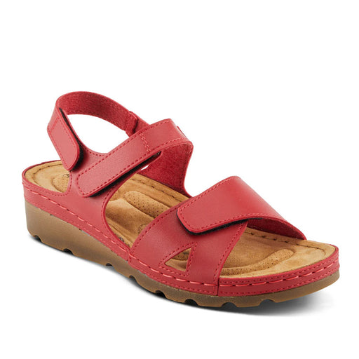 SPRING FOOTWEARComfortable wedge sandal with a back strap and buckle hook and loop straps that go across for security of the foot all day long. Upper: Synthetic ...