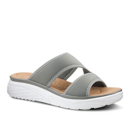 SPRING FOOTWEARA feather light, sporty slide sandal featuring a soft Lycra stretch, asymmetrical upper that conforms to your foot for ultra-comfort. Arch supports...