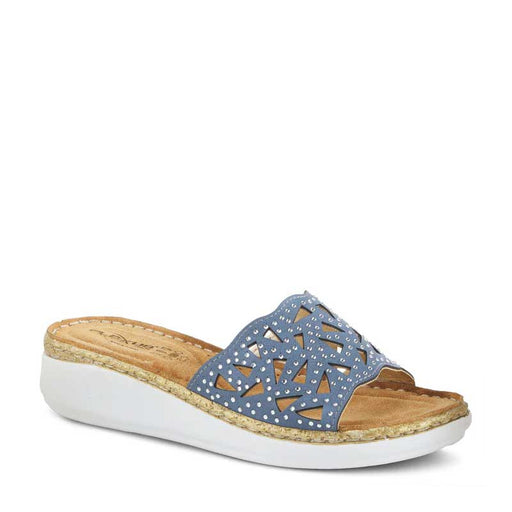 SPRING FOOTWEARCute perforated cutout geometric slide sandal bedazzled by rhinestones. Its platform wedge, Polyurethane outsole and cushioned insole allows for ev...